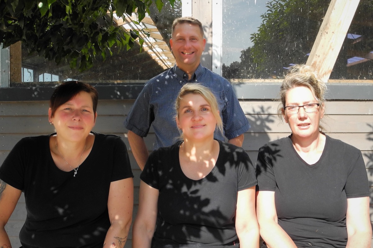 Stallhelferin (ganz links)